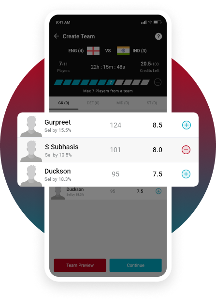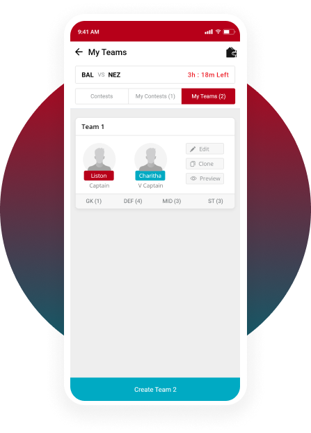 Gamepro11 is played by using your sport knowledge and skill. You can pick your own team made up of real players for Football. Create your team within a maximum budget of 85 credits. Your team earns points based on your chosen players' performance in the real-life matches. It's time to showcase your skill and go for glory!