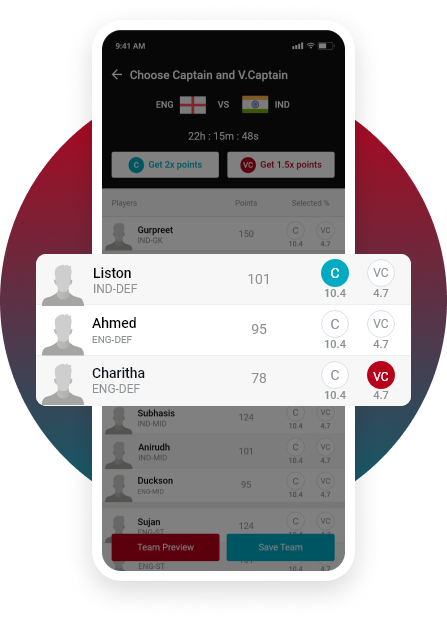After creating your Gamepro11 team, choose a Captain & Vice Captain for the team.